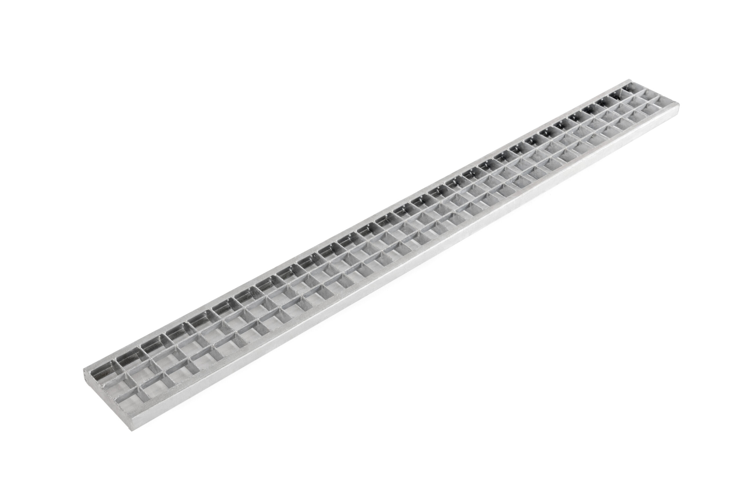A grelha quadriculada sem aro é utilizada para cobertura de canais de drenagem, permitindo a passagem das águas pluviais.